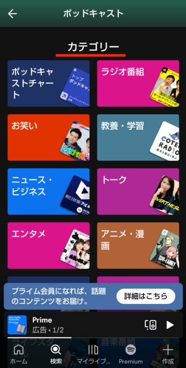 Spotifyのポッドキャストはジャンルがとても多いです。