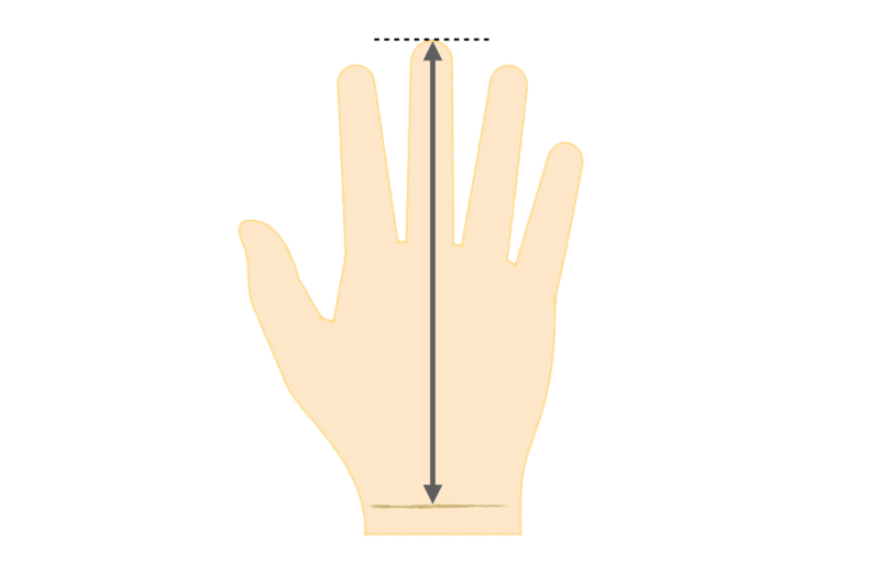 自身の手にあったサイズを調べるには「手首のシワから中指の先端までの距離」を測ります。