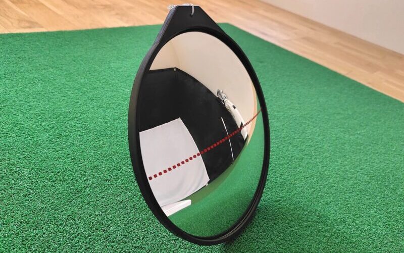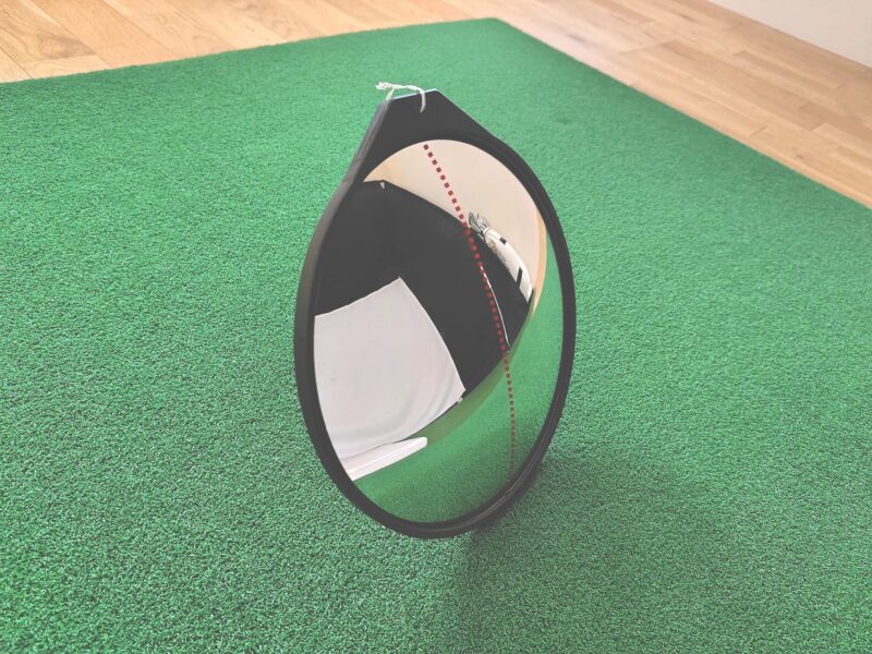 鏡が凸形状になっているので、省スペースでも全身を映すことができ、正面からもスイングを確認することが出来ます。