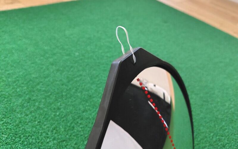 私が自宅でスイングする場所の目の前にちょうど柱があったので、柱に鏡を掛けれるようにしました。練習場では難しいと思いますが自宅であれば工夫次第で可能だと思うので、ぜひ試してみていただければと思います。