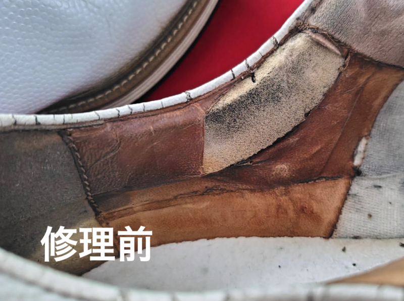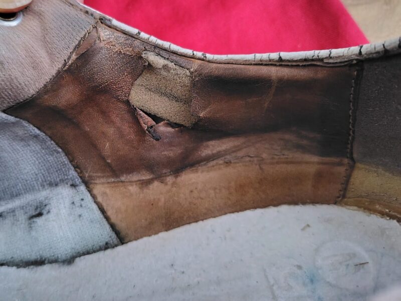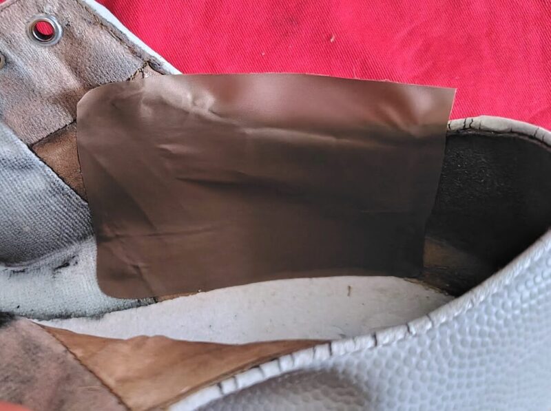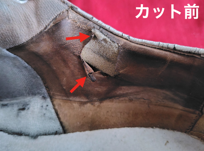 内側の革が破れたシューズがあったので、自分で修理をしてみました。