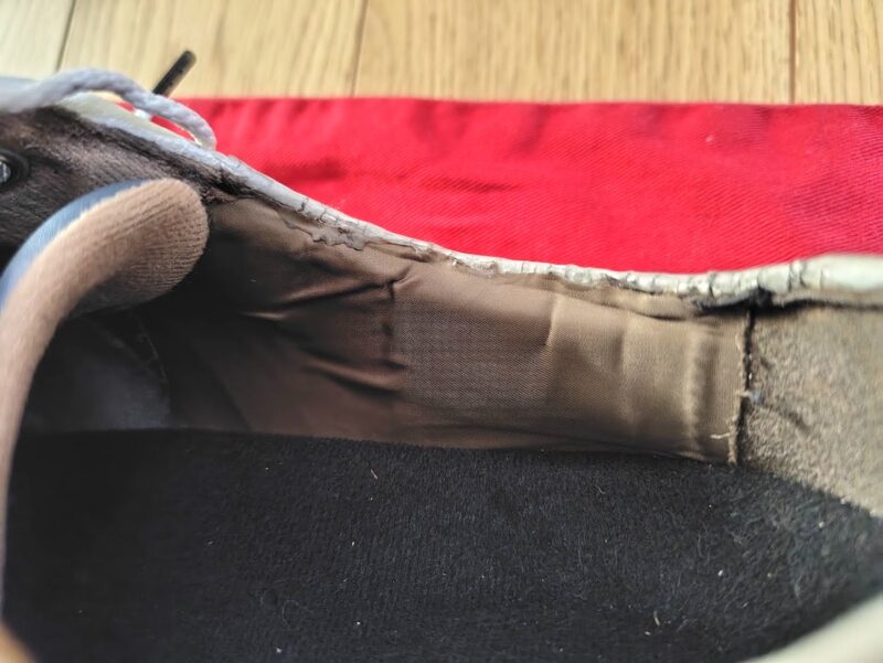 外側は履き口がひび割れしていますが、その他はまだキレイで、そこまで劣化はひどくない状態だと思っています。