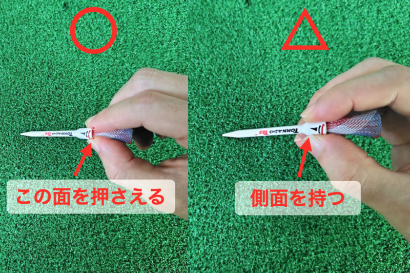 コツとしては、プラスチックの上部を押しつけられる形で持つとティーが挿しやすいです。